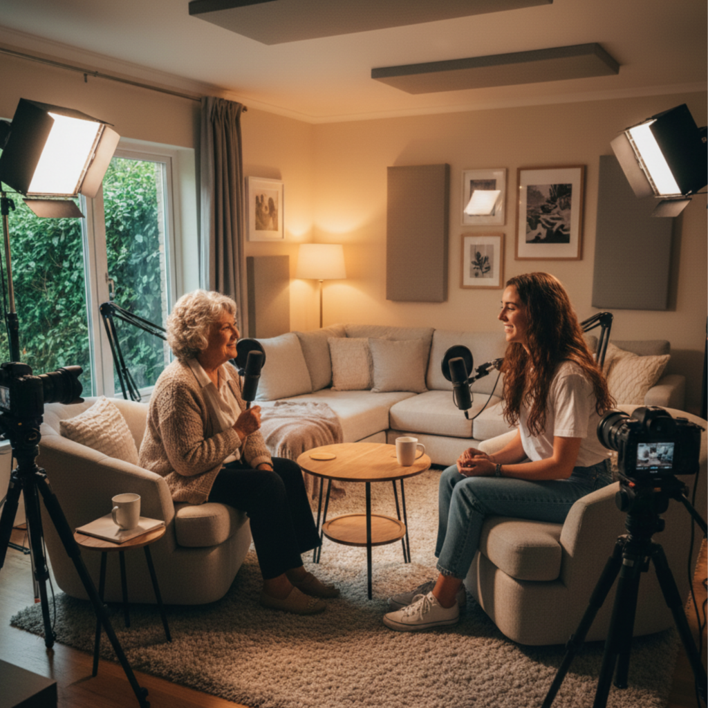La voz es el reflejo del alma. Preservamos las historias, risas y consejos de tus seres queridos en un formato de video, audio e iluminación profesional, creando un tesoro emocional que tu familia podrá escuchar por generaciones.